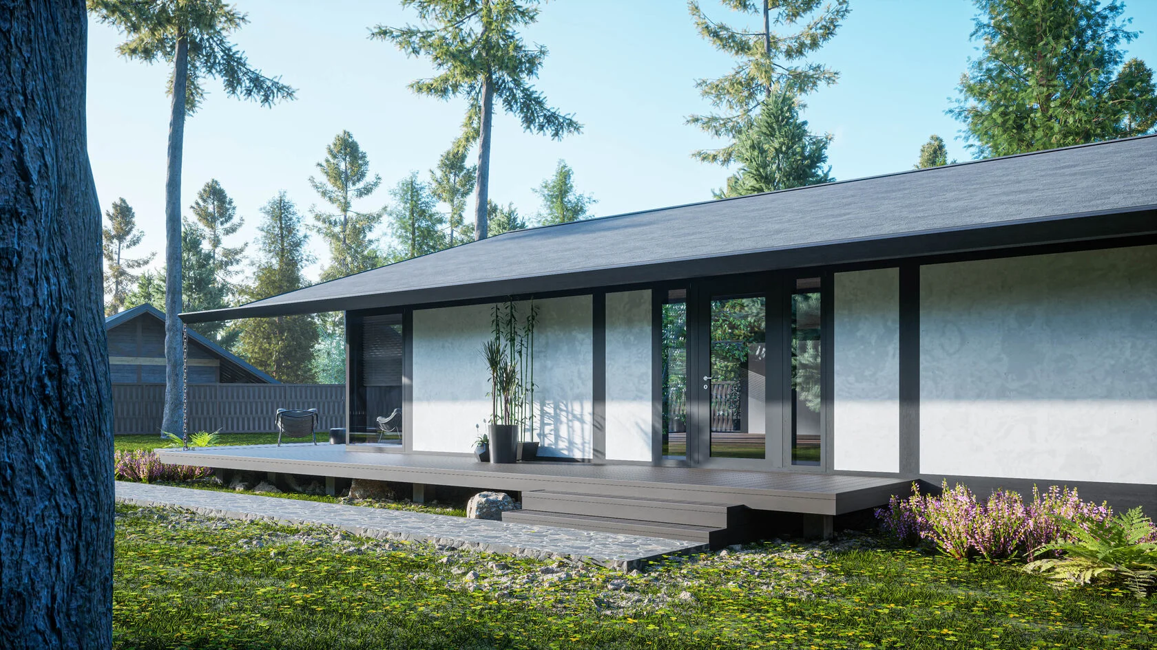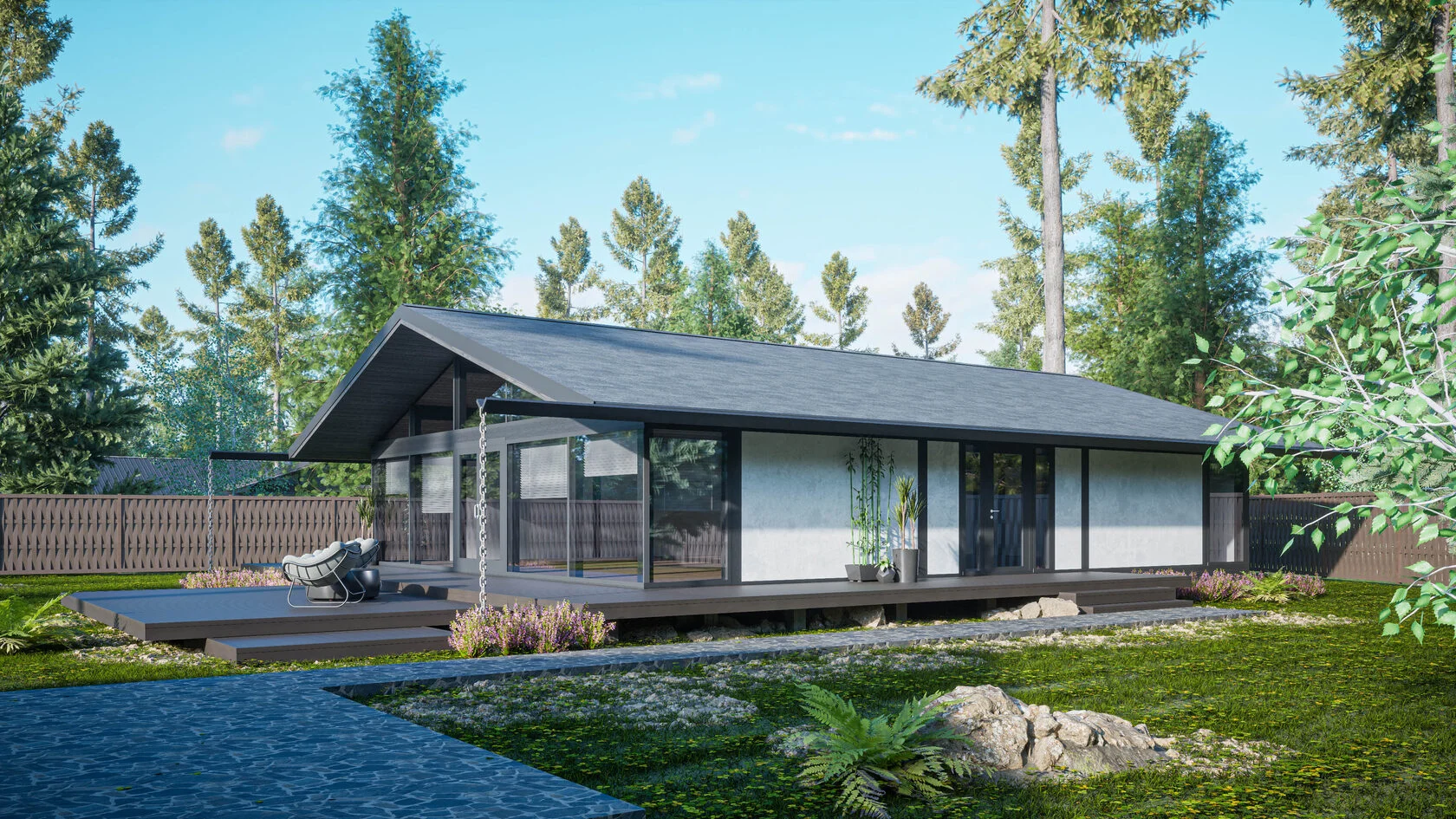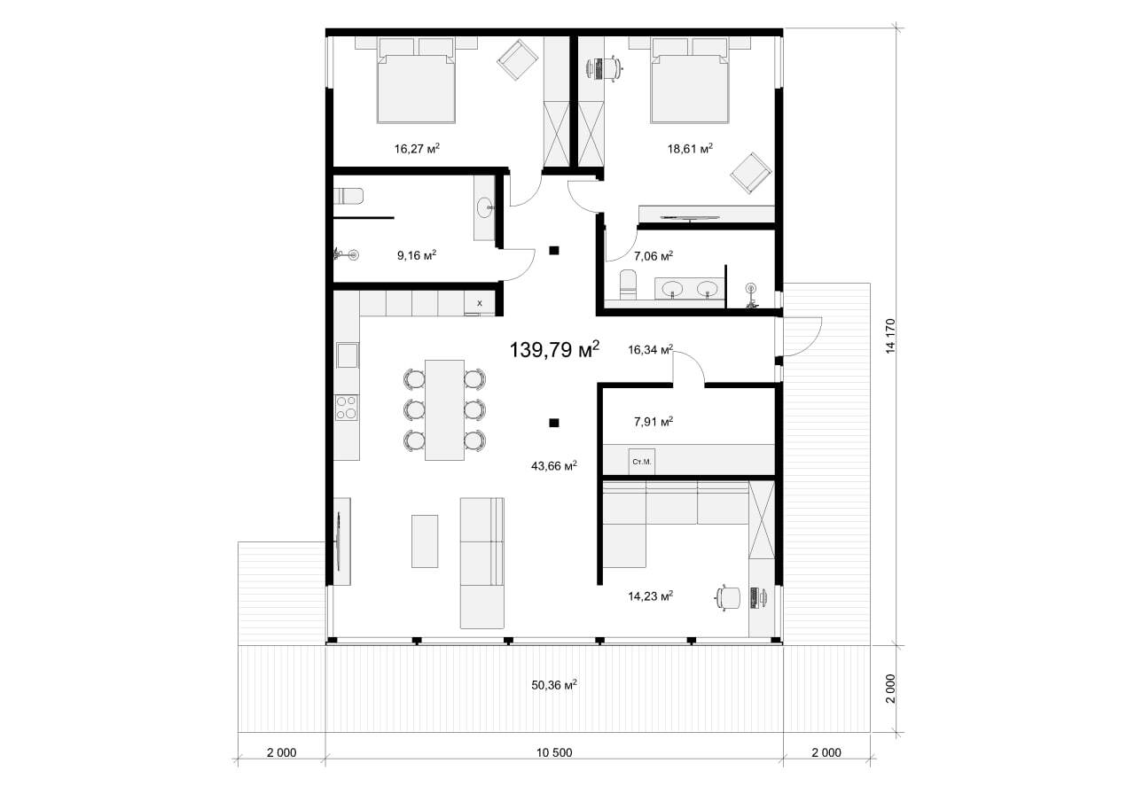 Этот стильный дом площадью 140 квадратных метров выполнен в уникальной фахверковой технологии, которая сочетает в себе традиции и современность. Просторная планировка включает две или три уютные спальни, что идеально подходит для семьи или комфортного проживания.
